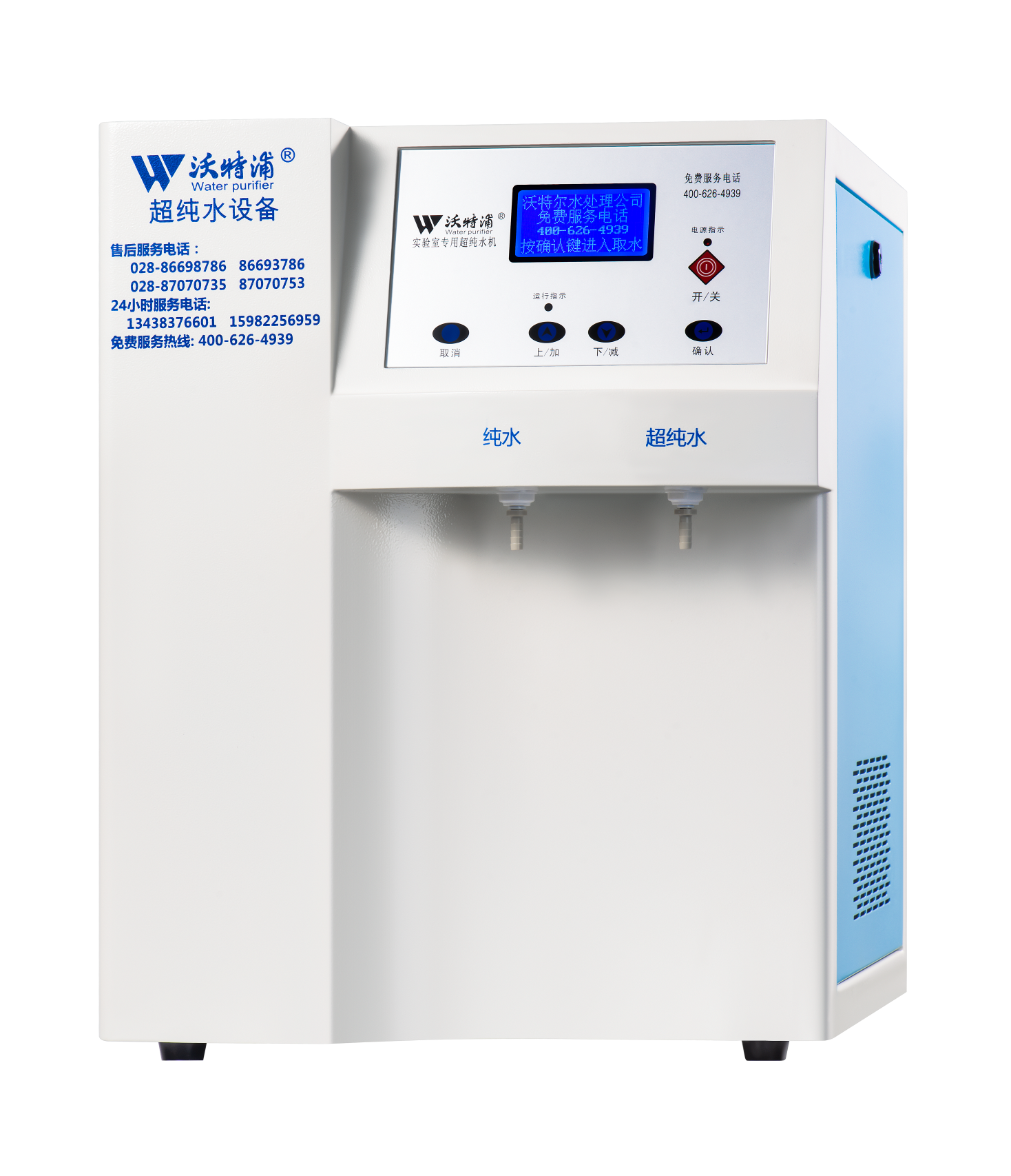 采用雙波長紫外消解系統,除熱源超濾膜組件,采用進口離子交換樹脂過濾,使超純水能滿足各種實驗要求。